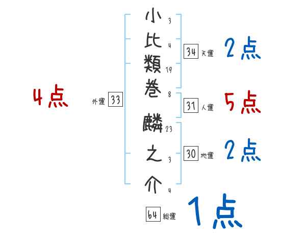 小比類巻麟之介さんの画数の鑑定結果
