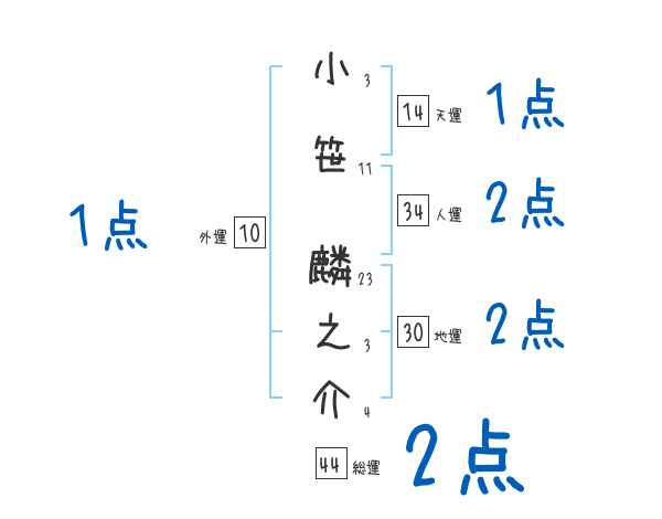 小笹麟之介さんの画数の鑑定結果