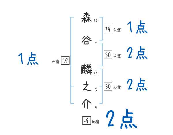 森谷麟之介さんの画数の鑑定結果
