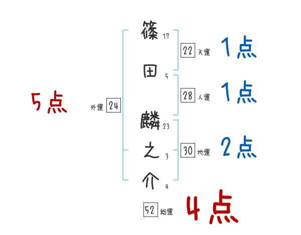 篠田麟之介さんの画数の鑑定結果