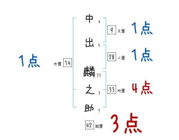 外運![]() | 中出麟之助さんの外運は14画の1つ星!人に対して優しいがストレスを溜め込みがち。人間関係のトラブルを避けるよう気をつけましょう。 生活面を象徴する運勢です。外部から受ける影響力を表し、結婚運、家庭運や職場、環境への順応性を表します。 |