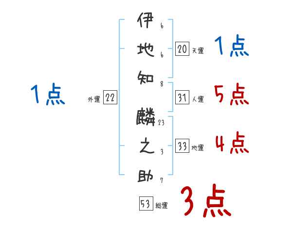 地運![]() | 伊地知麟之助さんの地運は33画の4つ星!権力志向でプライドが高い。勇気があり運を切り開き成功する。 個性を表す基礎的な運勢です。性格形成や対人関係、行動力など家庭環境に影響されます。主に誕生してから20歳くらいまでの若年期の運勢を表します。 |