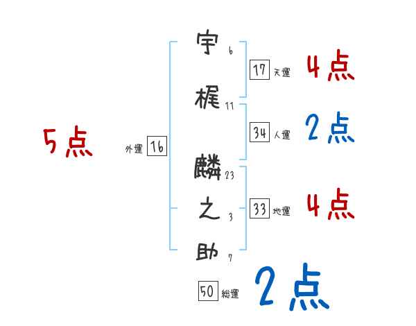 宇梶麟之助さんの画数の鑑定結果