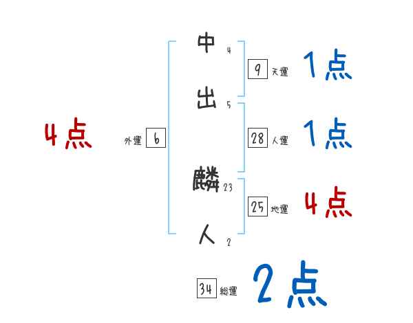 中出麟人さんの画数の鑑定結果