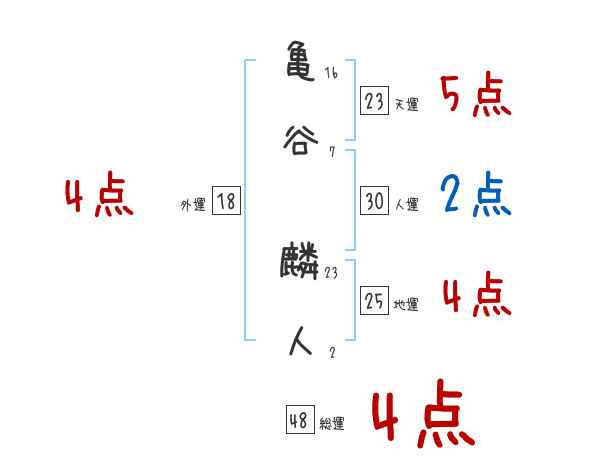 亀谷麟人さんの画数の鑑定結果