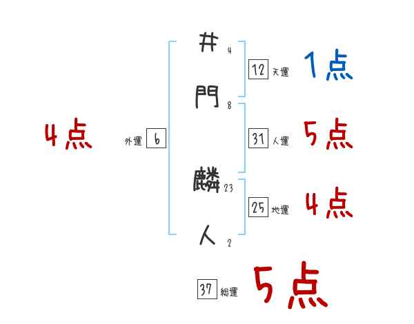 井門麟人さんの画数の鑑定結果