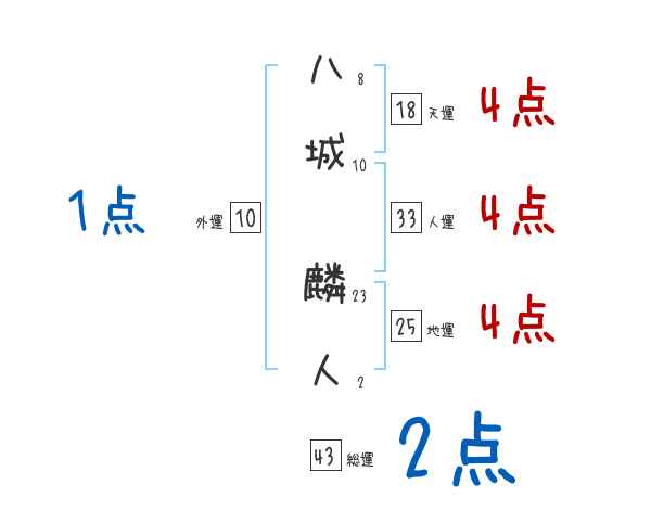 八城麟人さんの画数の鑑定結果