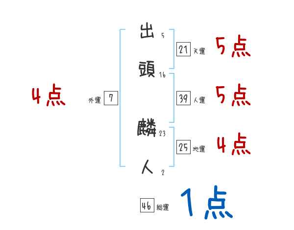 出頭麟人さんの画数の鑑定結果