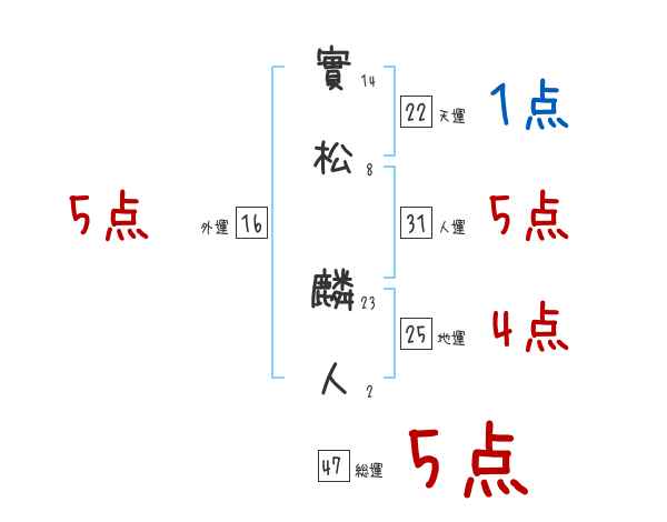 實松麟人さんの画数の鑑定結果