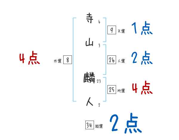 寺山麟人さんの画数の鑑定結果