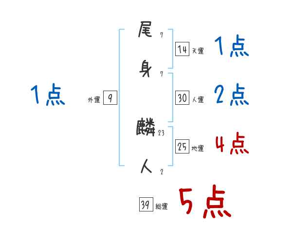 尾身麟人さんの画数の鑑定結果