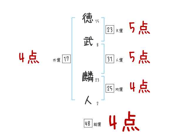 徳武麟人さんの画数の鑑定結果