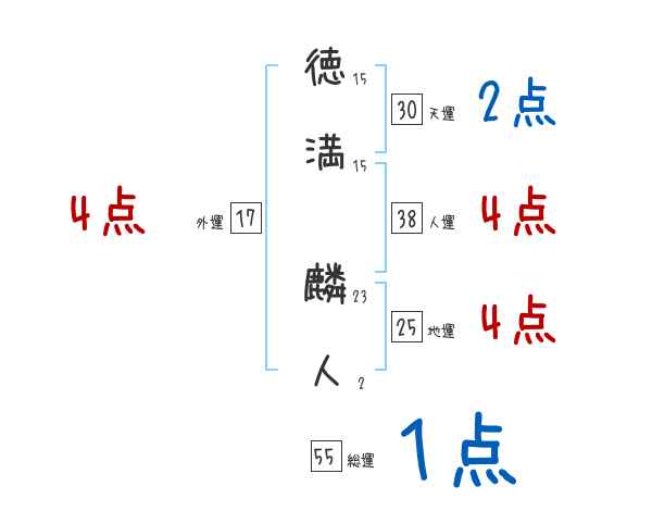 徳満麟人さんの画数の鑑定結果