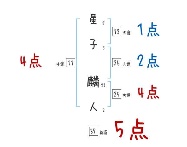 星子麟人さんの画数の鑑定結果