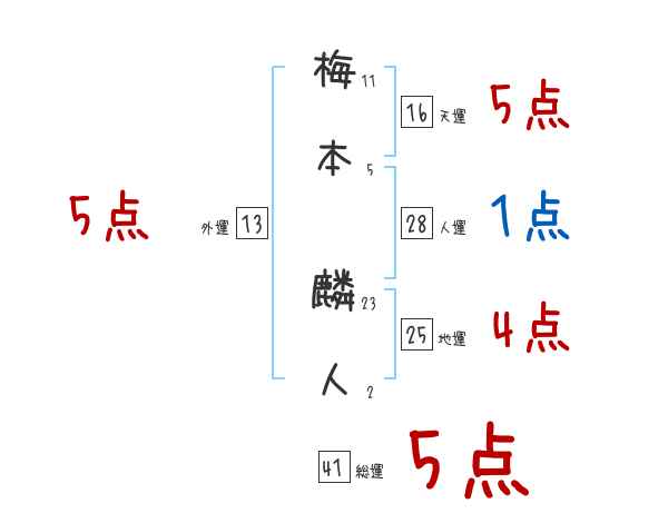 梅本麟人さんの画数の鑑定結果