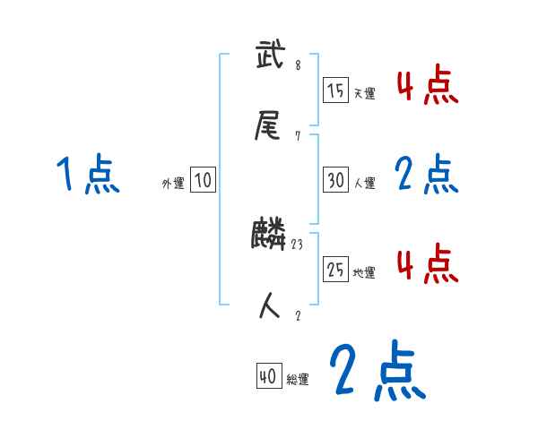 武尾麟人さんの画数の鑑定結果