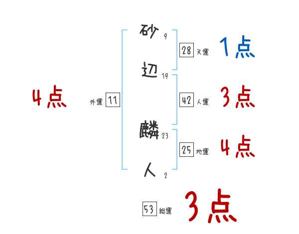 砂辺麟人さんの画数の鑑定結果
