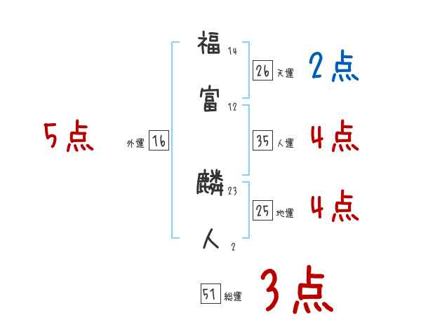 福富麟人さんの画数の鑑定結果