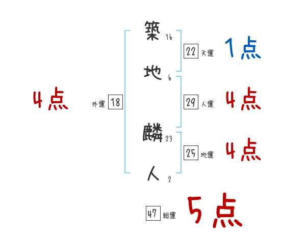 築地麟人さんの画数の鑑定結果