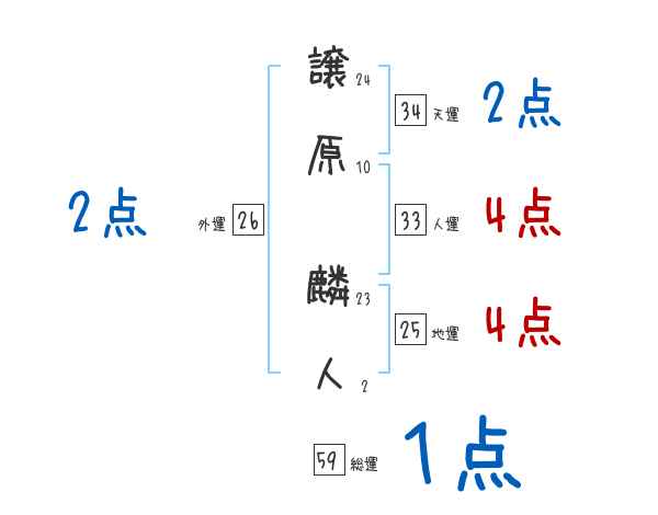 譲原麟人さんの画数の鑑定結果