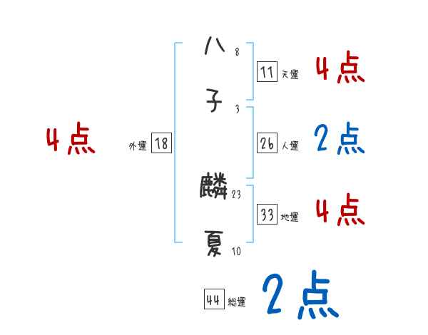 八子麟夏さんの画数の鑑定結果