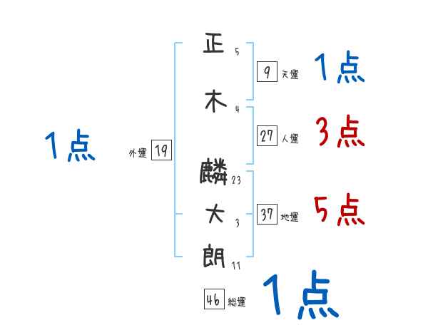 正木麟大朗さんの画数の鑑定結果