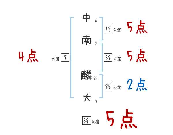 中南麟大さんの画数の鑑定結果
