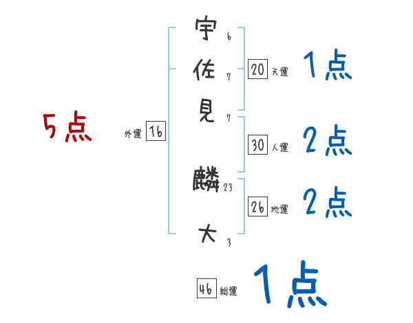 宇佐見麟大さんの画数の鑑定結果