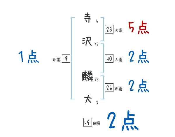 寺沢麟大さんの画数の鑑定結果