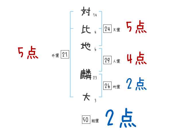対比地麟大さんの画数の鑑定結果