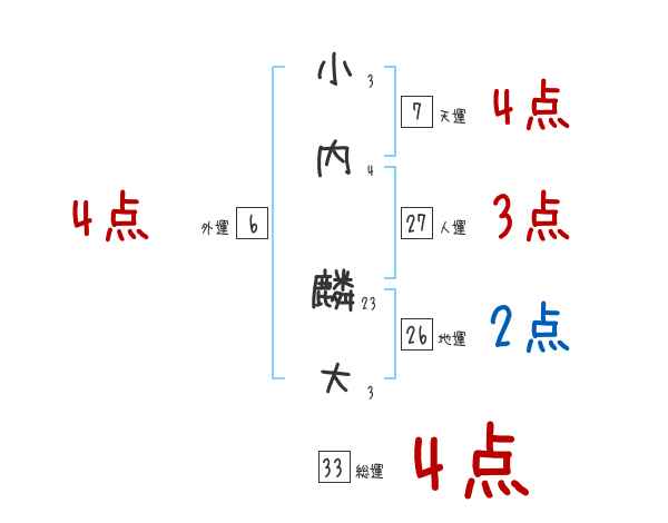 小内麟大さんの画数の鑑定結果