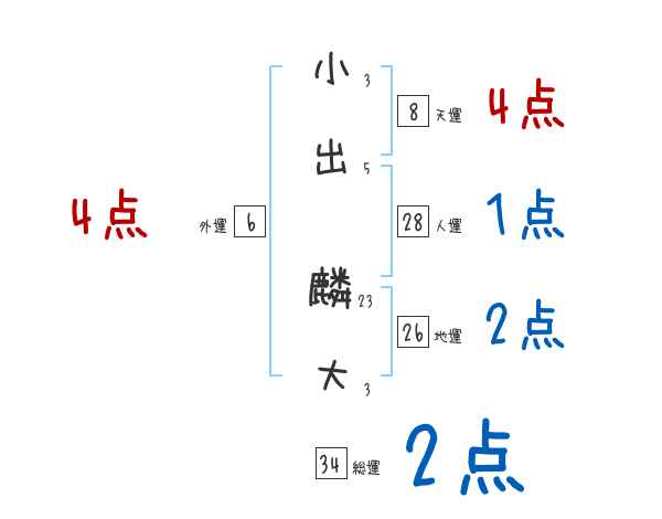 小出麟大さんの画数の鑑定結果