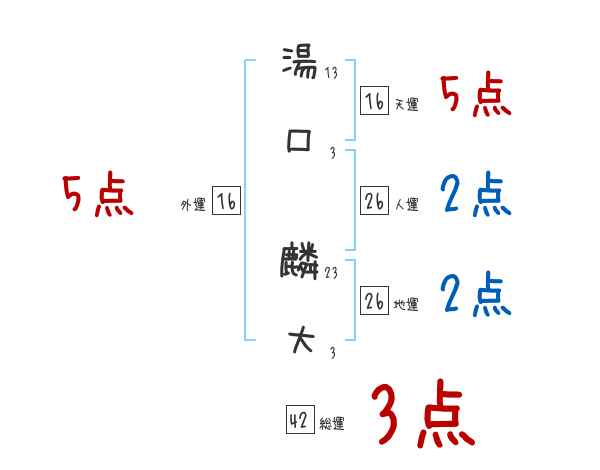 湯口麟大さんの画数の鑑定結果