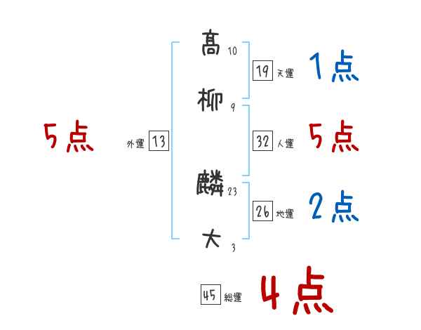 髙柳麟大さんの画数の鑑定結果