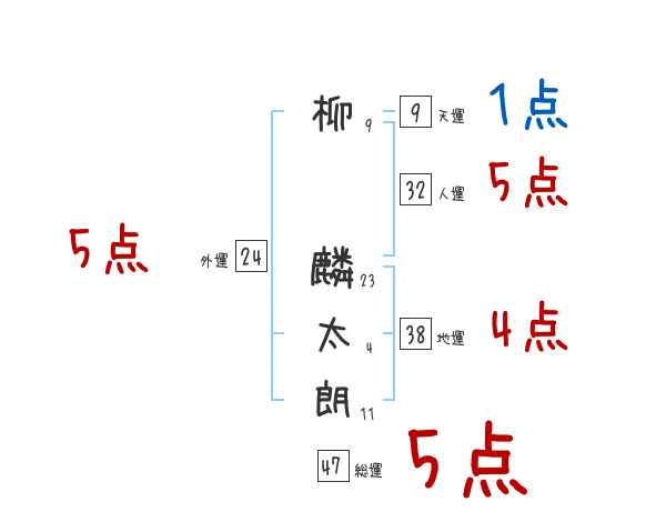 柳麟太朗さんの画数の鑑定結果