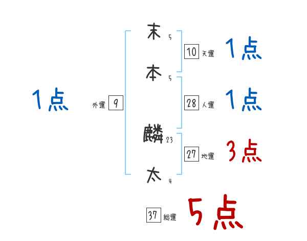 末本麟太さんの画数の鑑定結果