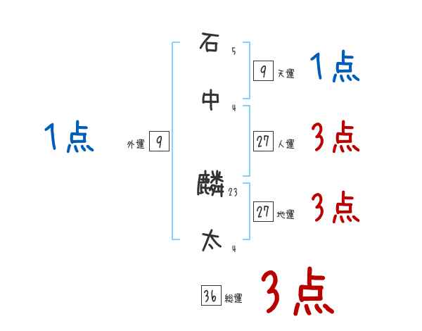 石中麟太さんの画数の鑑定結果