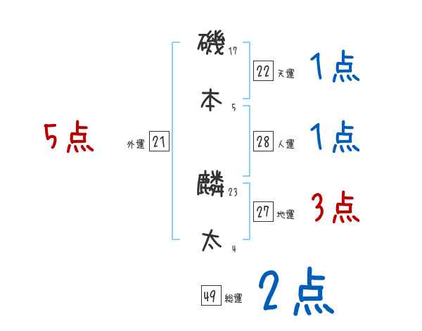 磯本麟太さんの画数の鑑定結果