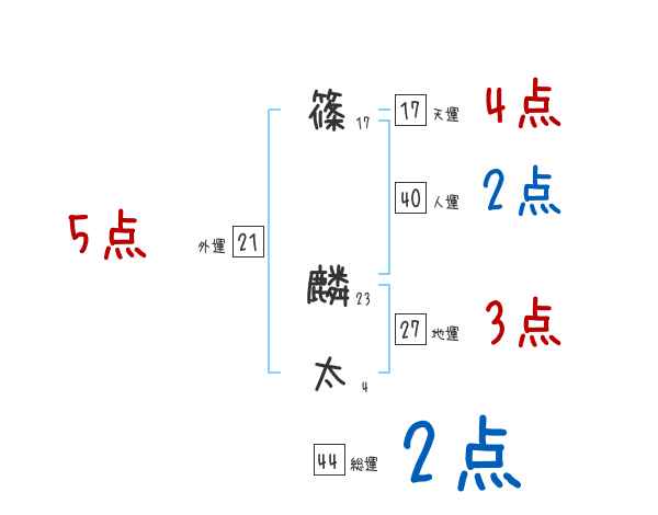 篠麟太さんの画数の鑑定結果