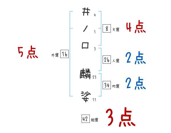 井ノ口麟娑さんの画数の鑑定結果