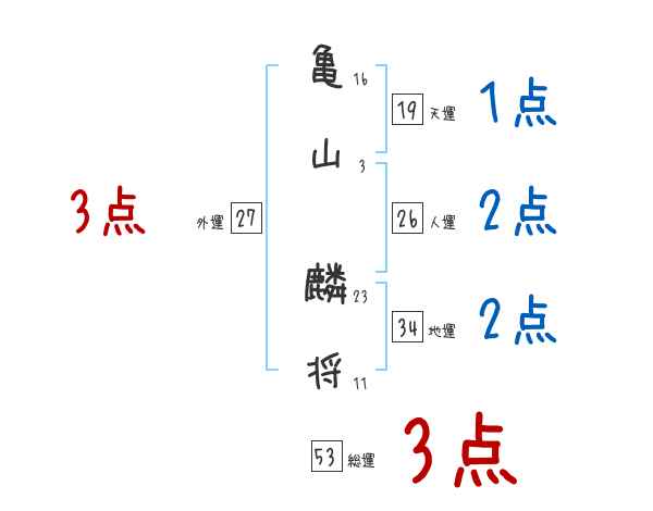 家系が持つ宿命的な運勢を表します。祖先から受け継いだ苗字ですので自分の力が及びません。家柄を象徴します。