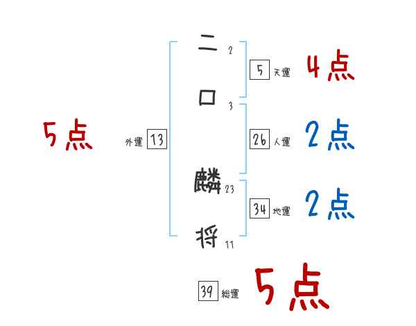 二口麟将さんの画数の鑑定結果