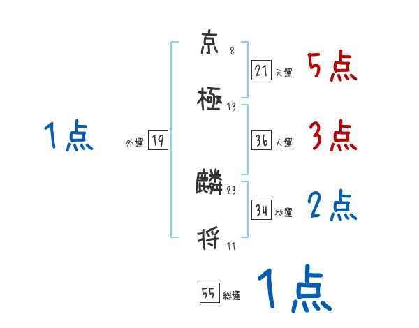 京極麟将さんの画数の鑑定結果