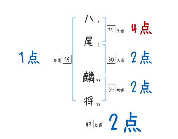八尾麟将さんの画数の鑑定結果