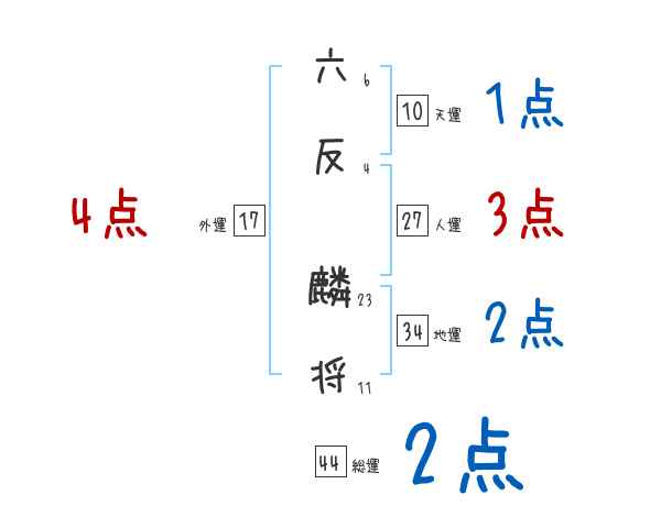 六反麟将さんの画数の鑑定結果