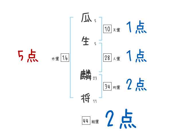 瓜生麟将さんの画数の鑑定結果