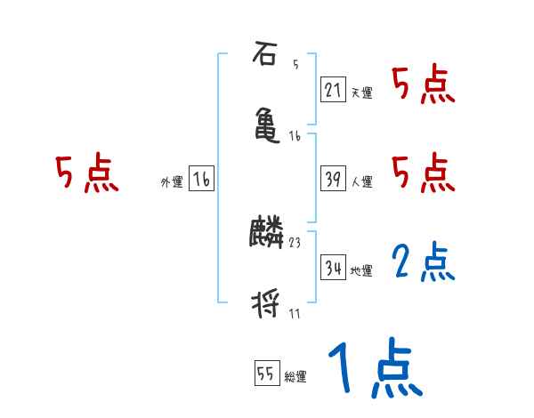 石亀麟将さんの画数の鑑定結果