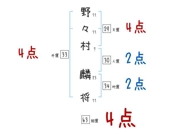 野々村麟将さんの画数の鑑定結果