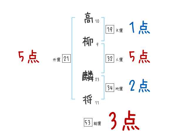 高柳麟将さんの画数の鑑定結果