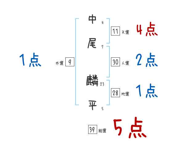 中尾麟平さんの画数の鑑定結果